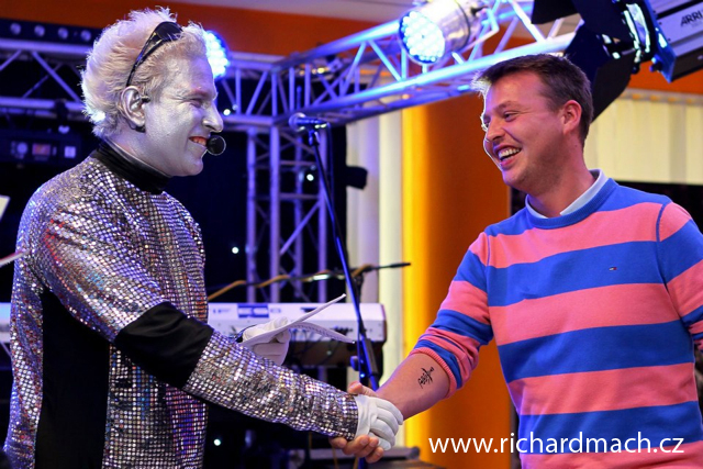 Při Richardových vystoupeních se nejen tancuje, nejen hraje, ale přirozeně i hovoří.